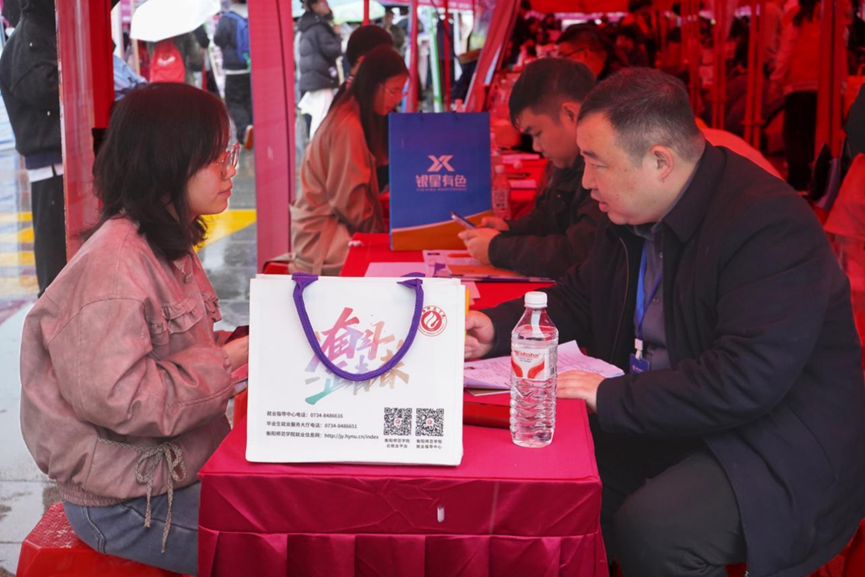 3月28日,衡阳师范学院2026届毕业生春季大型供需见面会暨2026年全国城市联合招聘高校毕业生春季专场活动在东校区校友广场顺利举行。校党委委员、组织部部长唐艳莅临现场指导工作,外国语学院党政班子成员带队参会,我院毕业生踊跃参与、积极应聘,低年级学生到场观摩学习,尽显青春风采与专业素养。