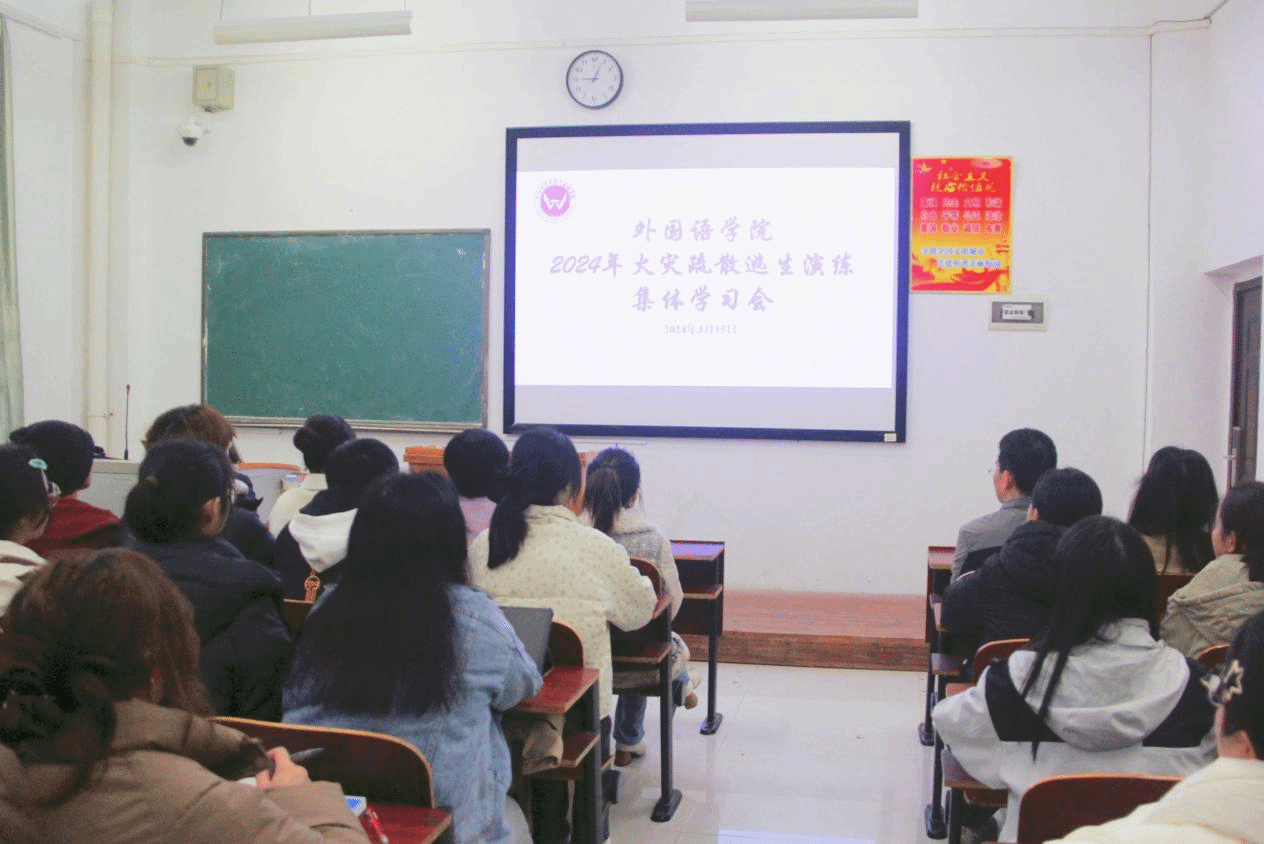 消防安全无小事。为了进一步增强师生的消防安全意识,宣传消防安全知识,3月15日上午9时,我院组织师生于外语楼各教室观看“2024年春季学校火灾疏散逃生演练公开课”。