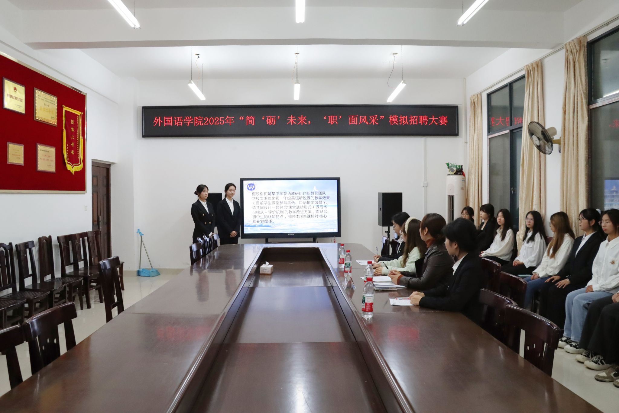 为积极应对就业新形势,提升外国语学院学子的简历制作能力与求职竞争力,帮助外院学子提前熟悉招聘流程、掌握求职技巧、提升就业竞争力,我院于2025年3月19日至4月17日期间,精心举办了“简‘砺’未来,‘职’面风采”简历制作大赛。此次大赛覆盖英语师范、商务英语、翻译三大专业,分别在外语楼南202、外语楼南201、外语楼南213会议室有序完成初赛、复赛、决赛三阶段比拼,各专业学子积极参与,充分展现了自身专业素养与职业潜力。