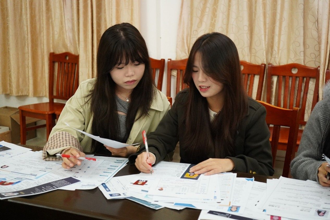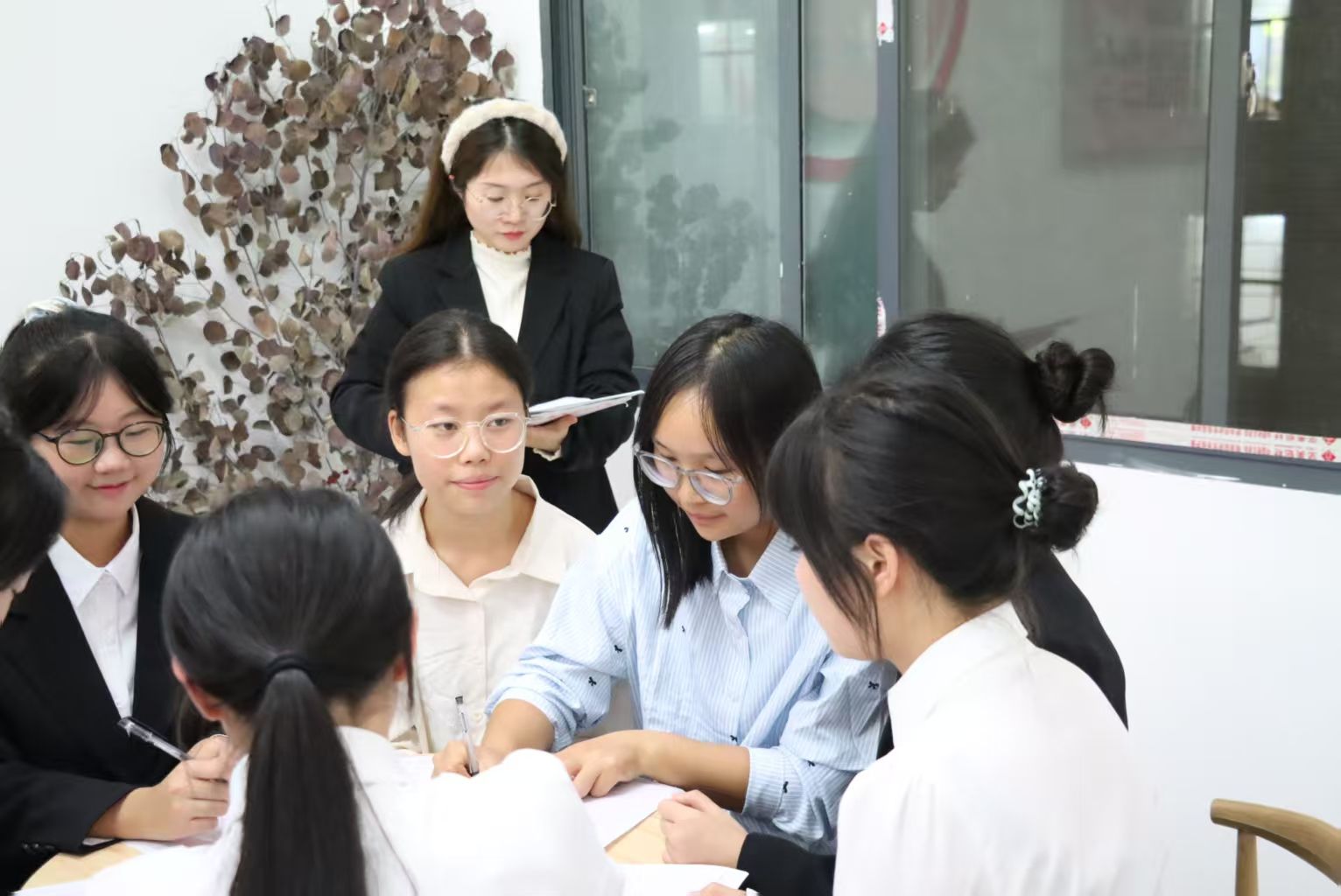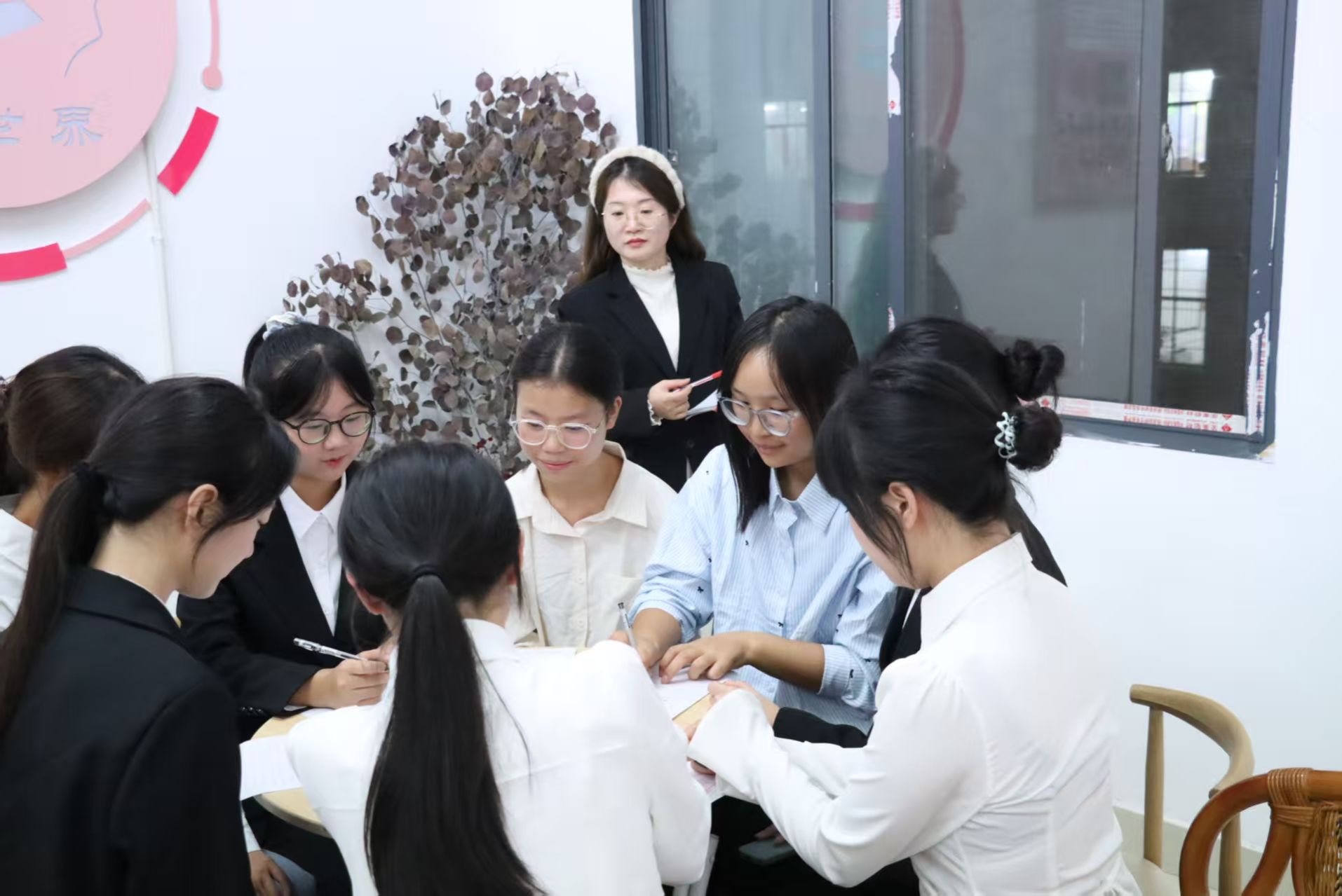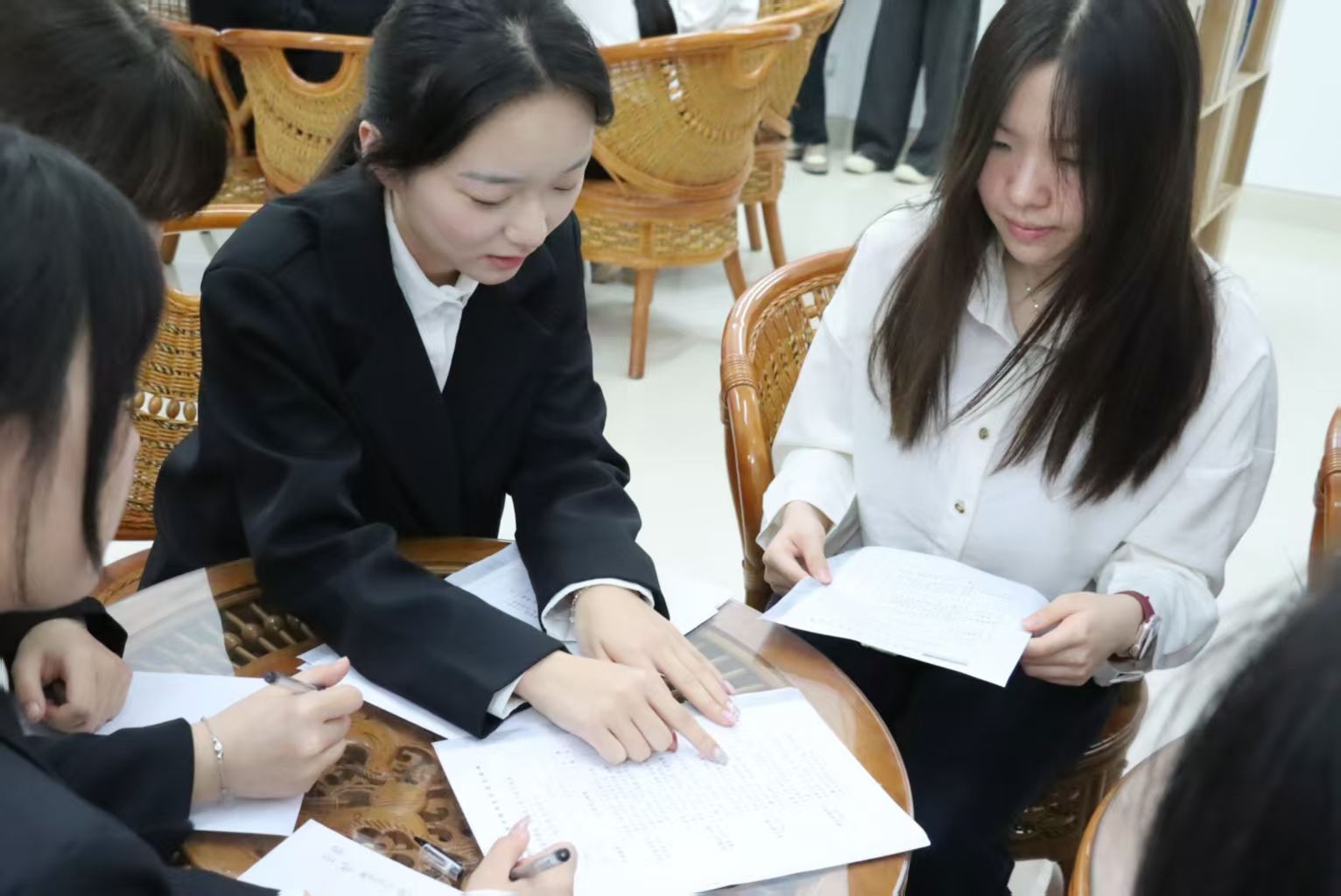 复赛阶段,英语师范的参赛选手聚焦“职业深度”,以小组讨论的形式推动学子们深化对教育职业的认知,合力用双语精心打磨 “以学生为中心”的教育主张。商务英语专业的选手则围绕专业特色与职业规划,开展无领导小组讨论。在讨论过程中,选手们结合商务英语专业岗位需求,对简历内容进行进一步优化,呈现出兼具专业性与个性化的简历作品。翻译专业的选手们在讨论过程中精准拆解任务、精心呈现方案,并通过现场阐述、答辩等环节充分展现实力。各专业队伍的深度角逐,为决赛积攒了极高热度。;负责老师也来到现场,在观摩中深入了解选手们的讨论细节,切实关注每一支队伍的备赛状态与思考方向。