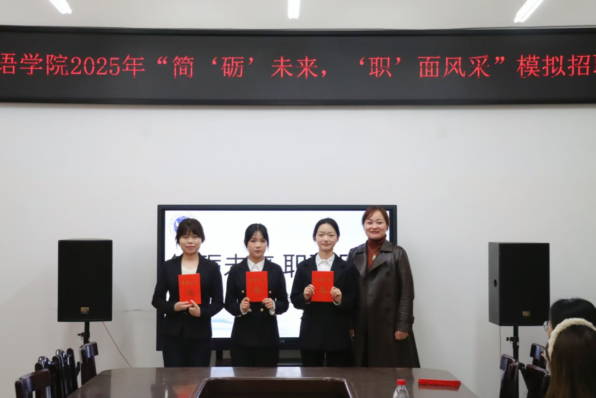 恭喜以上获奖同学!本次大赛完美收官,感谢每一位选手的积极参与!此次大赛,不仅为外国语学院不同专业的学子们搭建了贴合自身专业特色的求职实践平台,促进知识与实践相结合,助力学生明确职业方向、打磨专业技能,更成为学院梳理人才培养思路、强化就业指导工作的重要契机。大赛的成功举办,凝聚了师生共识与行业力量,为相关领域发展注入更多活力。未来,外国语学院将继续以就业为导向,深化专业建设,为培养更多适应社会需求的高素质外语人才而不懈努力。