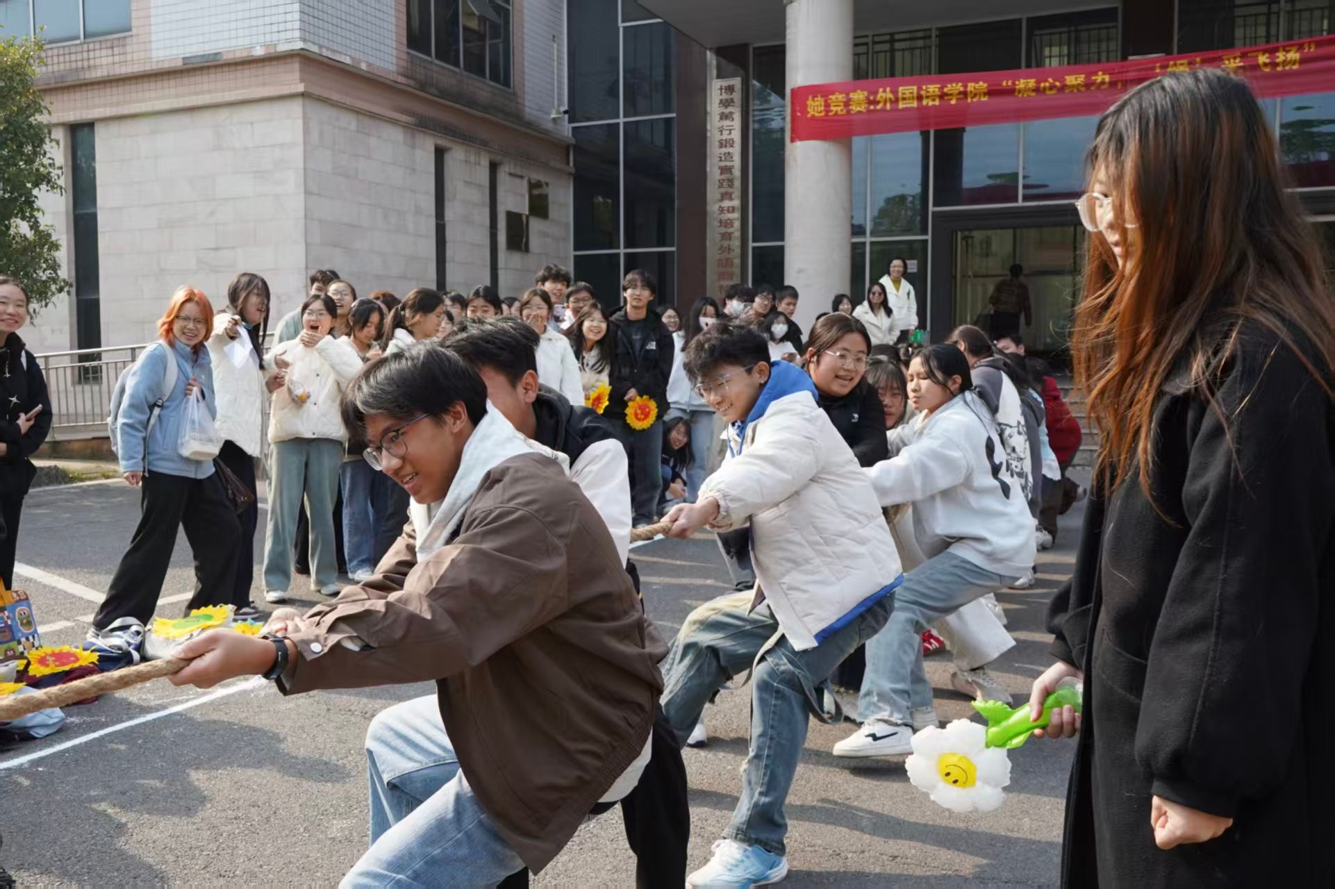 凝绳聚力同心战,众志克艰胜势扬。赛场上队员们心往一处想、劲往一处使,紧握长绳奋力拼搏,赛场边助威呐喊声此起彼伏,充分展现了外院学子们昂扬向上的竞技状态与团结协作的优良风貌。此次比赛以体育竞技为纽带,不仅锤炼了同学们坚韧不拔的拼搏精神、涵养了积极进取的生活态度,更传递了“同舟共济、奋勇争先”的集体主义精神。期待外院学子将这份同心协力、顽强拼搏的力量,转化为学习生活中的奋进动力,汇聚集体合力,为外国语学院高质量发展添砖加瓦。