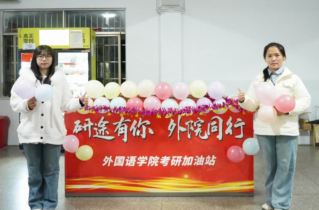 为向日夜奋战的考研学子传递学院的关怀与温暖,缓解他们备考冲刺阶段的压力与焦虑,激励他们以更饱满的状态,更从容的心态迎接考试。12月19日,外国语学院于学生公寓四栋设立考研加油站,为即将踏上考研征途的学子送上最真挚的祝福。