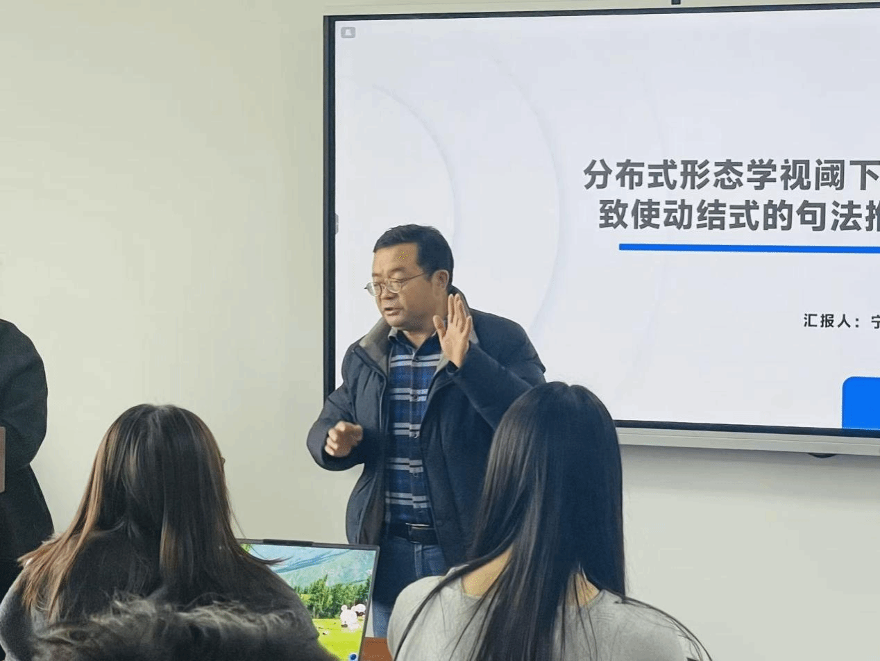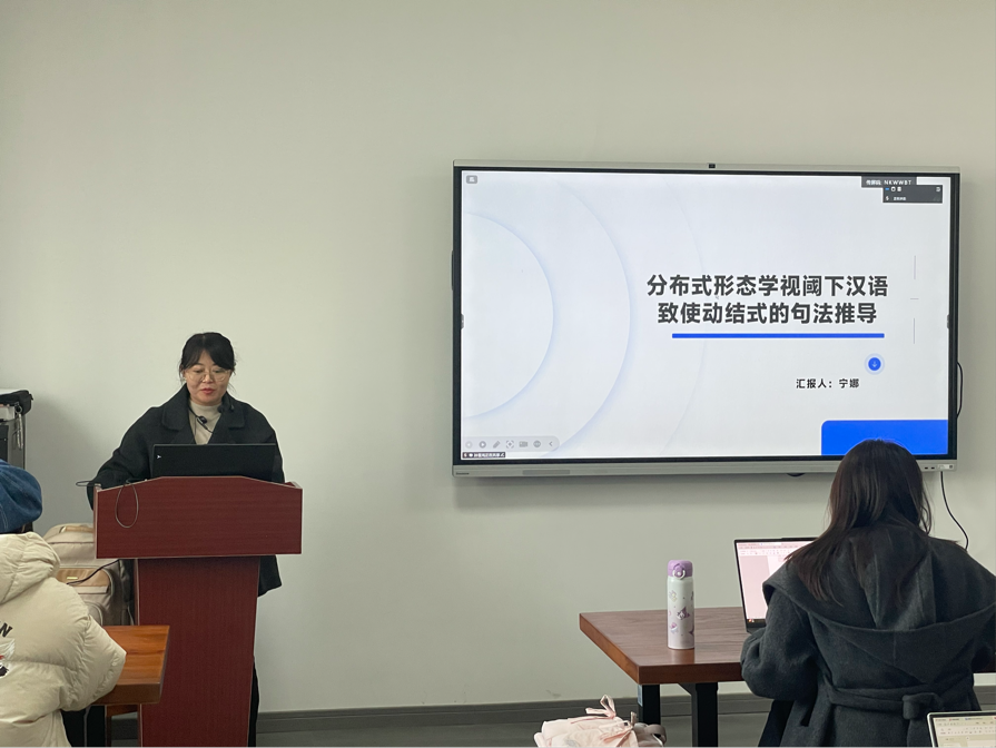 2025年12月8日下午3点,宁娜博士为衡阳师范学院外国语学院教师及研究生开展题为“分布式形态学视阈下汉语致使动结式的句法推导”的专题讲座。本次讲座由邬德平博士主持,外国语学院教师及2024级、2025级研究生在外语楼北504教室共同参与。