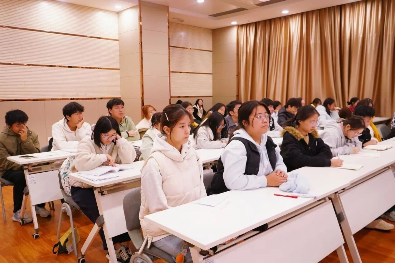 董俊以“念好‘四字诀’做有理想、敢担当、能吃苦、肯奋斗的新时代学生干部”为核心,结合丰富案例与深刻见解展开授课。她从“新、心、辛、馨”四字切入,系统阐释新时代学生干部的成长路径:以“新”立标,在新时代浪潮中锚定理想坐标,将个人奋斗融入民族复兴洪流;以“心”铸魂,坚守服务初心、凝聚同学人心、赢得师生民心,扛起青年担当;以“辛”砺志,主动吃学习之苦、挫折之苦、劳动之苦,锤炼坚韧品格;以“馨”践行,明悟奋斗意义,秉持为国为民的奋斗境界,在点滴进步中书写青春华章。