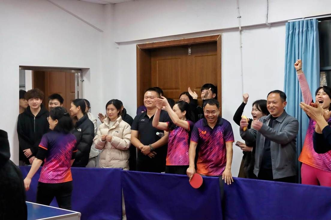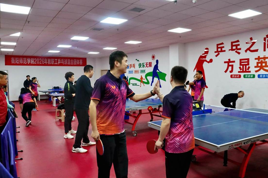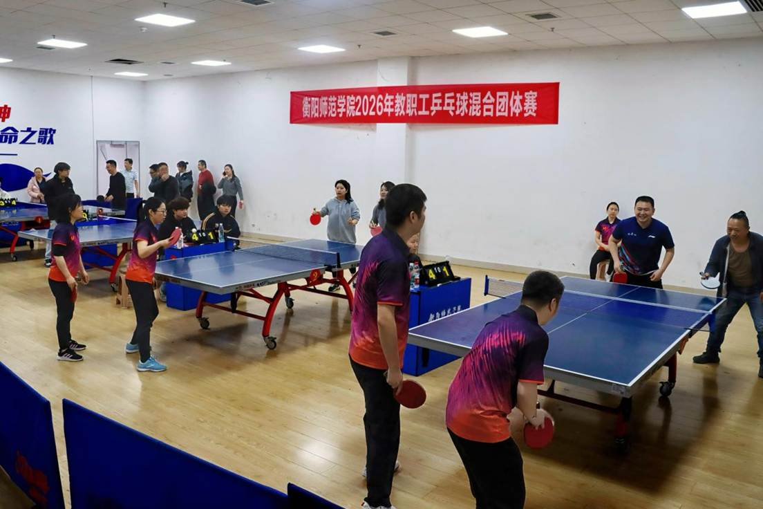 3月28-29日,衡阳师范学院教职工乒乓球混合团体赛在东校区乒乓球馆展开,我院分工会组队参赛。赛场上队员们奋勇拼搏,学院领导现场督战。我院代表队连战连捷闯入决赛,决赛中稳扎稳打力克对手,最终摘得桂冠。据悉,这是我院分工会连续第三次夺得学校乒乓球混合团体赛冠军!