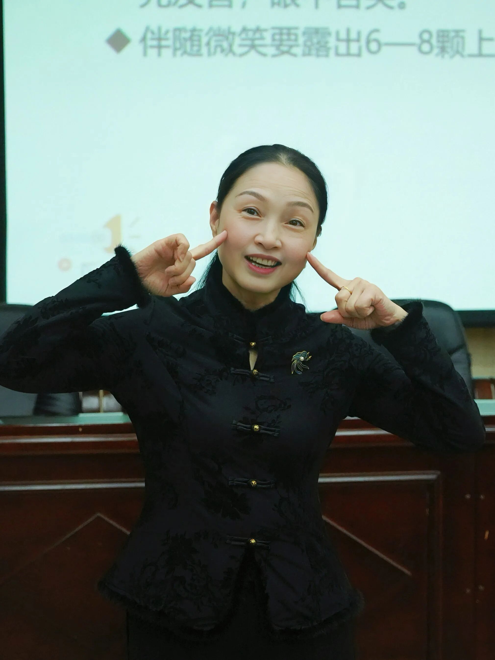 接着,“个人形象精修” 环节干货满满、互动频频!主讲人引用《礼记・玉藻》中的古训,点明 “形象是内在品德的外化名片”,随后以商务场合着装为生动案例,将 “TOP 原则”拆解为易懂好记的实操技巧;从发型与脸型的适配、手部细节的整洁,到站姿 “挺拔如松”、坐姿 “端庄如兰”、走姿 “从容如风” 的仪态要点,主讲人通过趣味礼仪训练、元气微笑手势舞、现场介绍礼实操等形式,让大家在轻松互动中快速掌握核心技能,更深刻理解 “悦己悦人” 的形象礼仪真谛 —— 得体的形象不仅能给他人留下美好印象,更能让自己在人际交往中收获自信与底气。